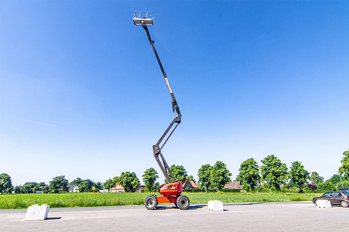 Mit der Manitou 200 ATJ Gelenkteleskoparbeitsbühne bekommen Sie einfachen Zugang zu entlegenen Arbeitsbereichen. Die Arbeitsbühne lässt sich bis zu einer Arbeitshöhe von 20,35m ausfahren und ermöglicht komfortables Arbeiten ohne Kompromisse. Das spezielle Design und Fahrgestell ermöglicht eine hervorragende Geländegängigkeit. Sicheres Arbeiten auf allen Bodenarten ist für unsere Arbeitsbühne kein Problem.